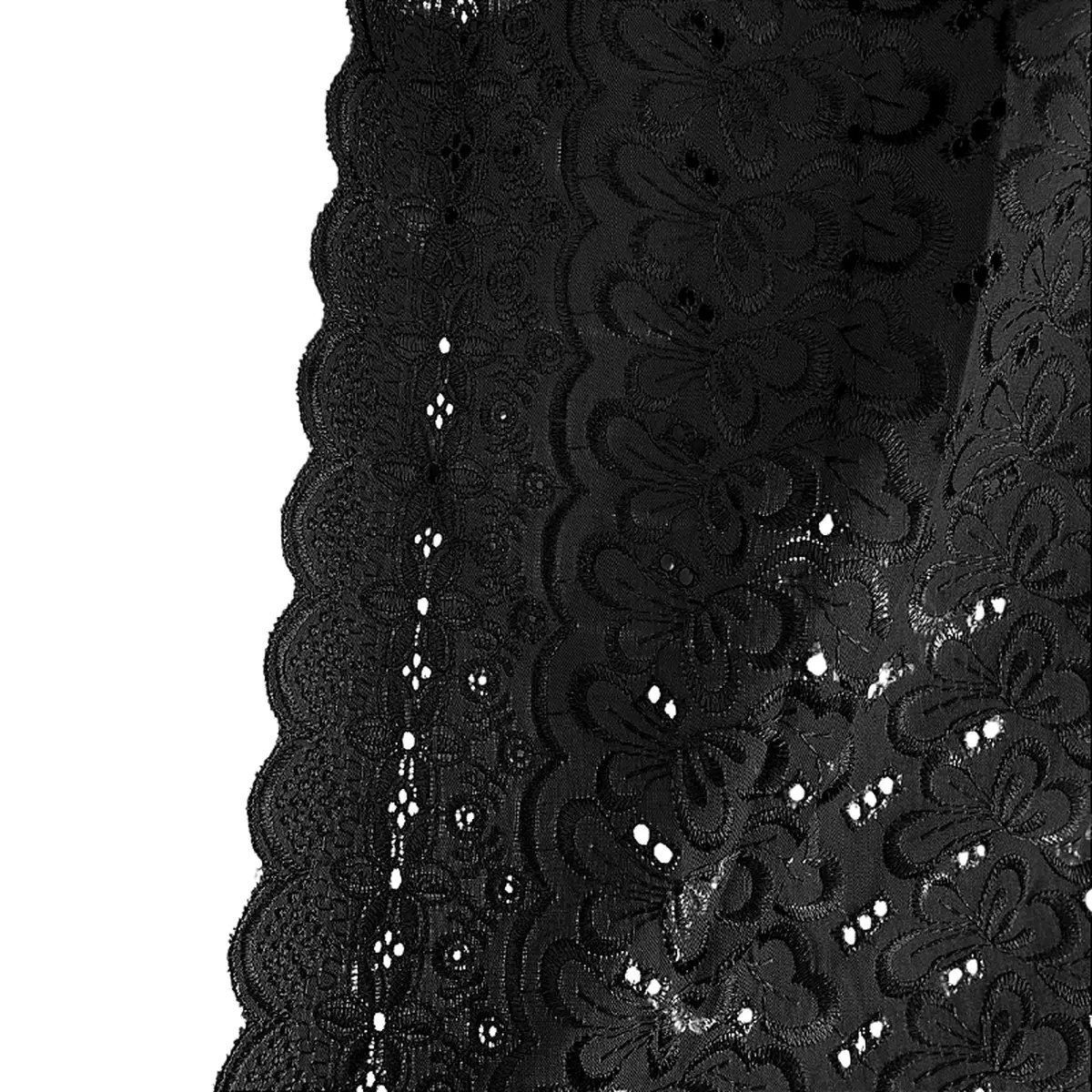 Laise Bordado Austríaco - Borboleta Floral Preto - 1,30m de Larg -