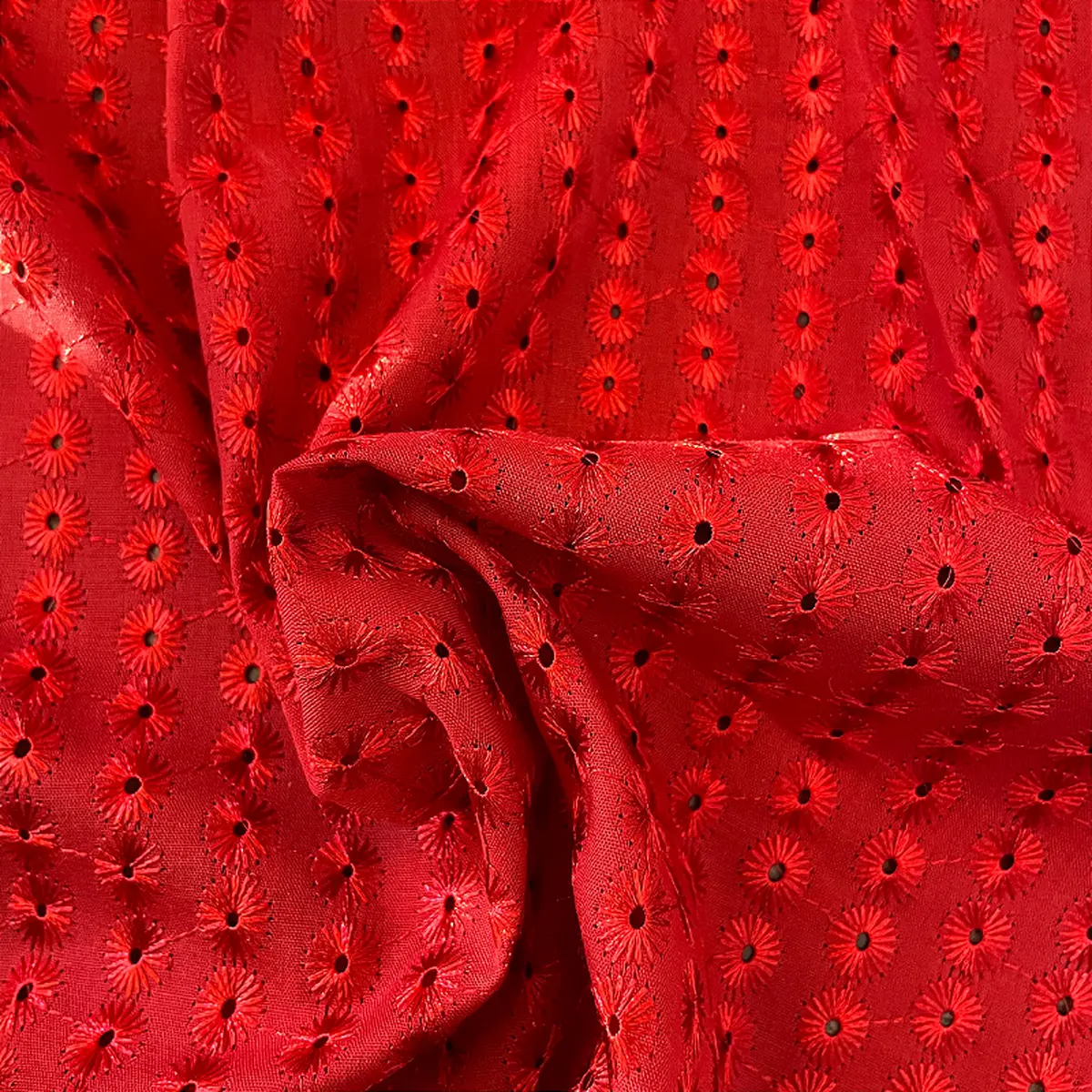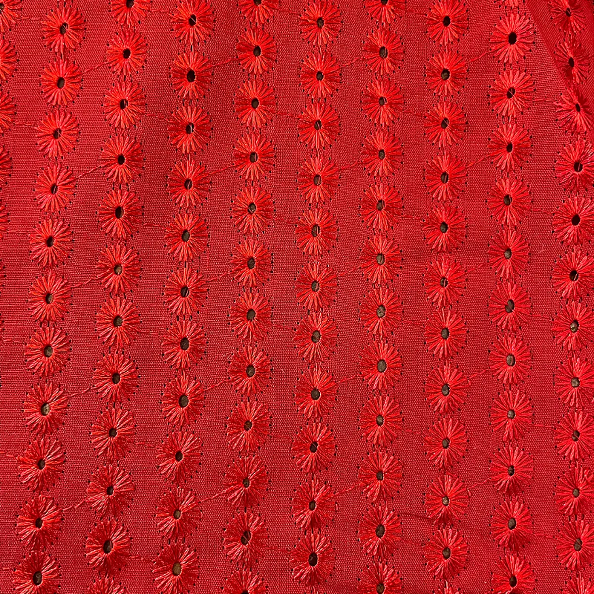 A Laise Bordado Austríaco é um tecido Misto de Algodão com Poliéster que possui como traço marcante sua superfície vazada e charmoso bordada em alto relevo com furinhos, apresenta toque suave e ótimo caimento