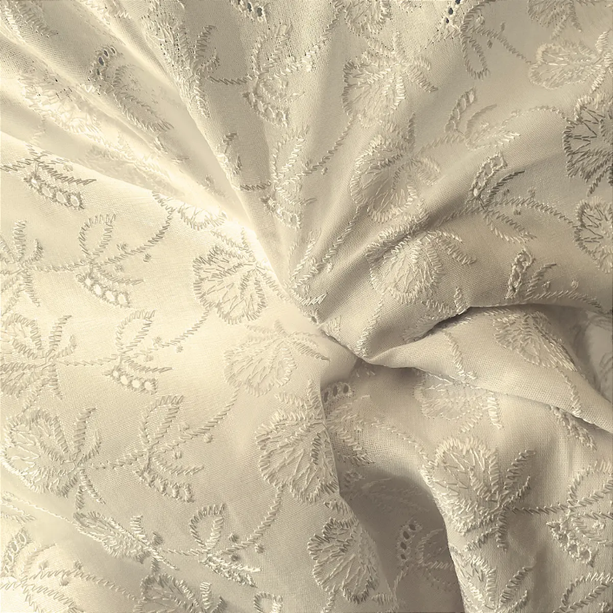 Laise Bordado Austríaco - Ramagem Creme - 1,30m de Largura -