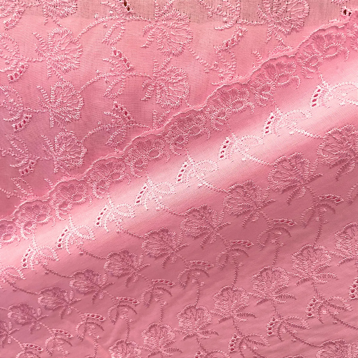 Laise Bordado Austríaco - Ramagem Rosa Claro - 1,30m de Largura -