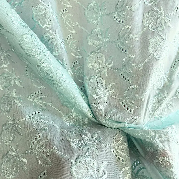 Laise Bordado Austríaco - Ramagem Verde Claro - 1,30m de Largura -