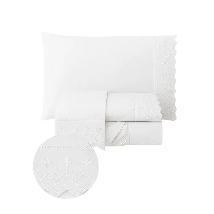 O Kit Lençol Bordado Inglês Casal traz charme e sofisticação para o quarto, com detalhes delicados em bordado que deixam sua cama ainda mais aconchegante.