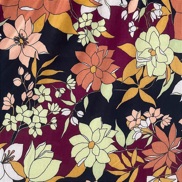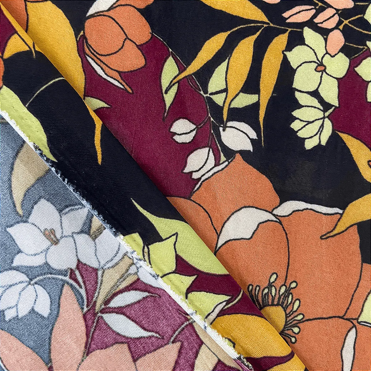 Liganete Estampada - Floral Fundo Preto - 1,60m de Largura -
