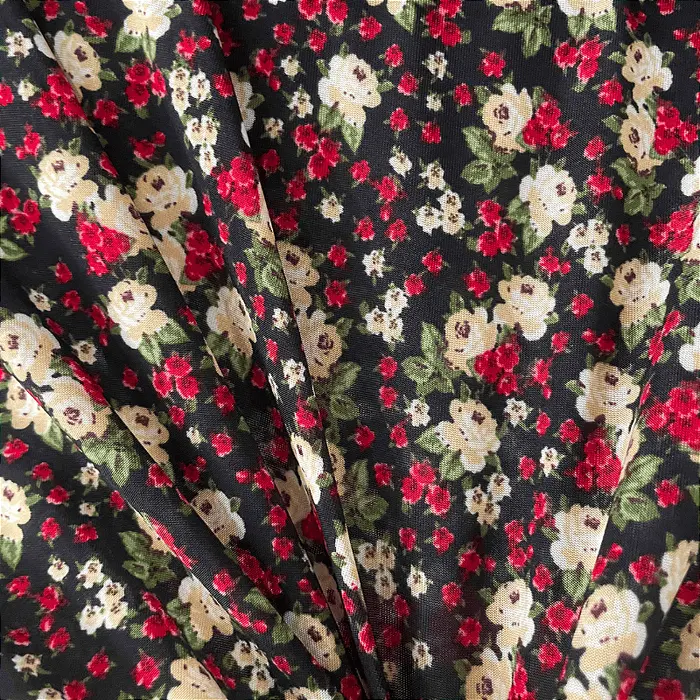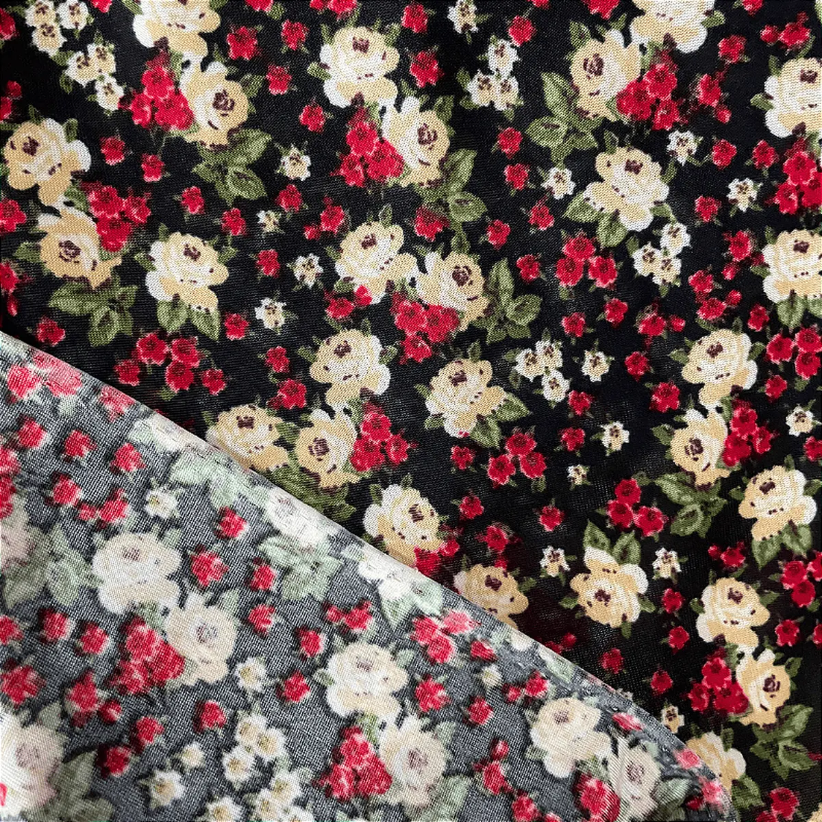 Liganete Estampada - Floral Miudo Preto - 1,60m de Largura -