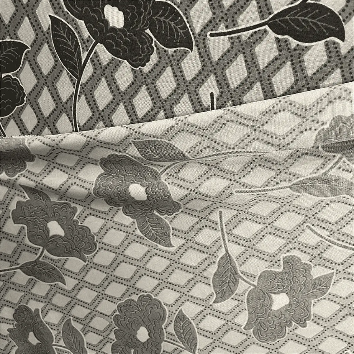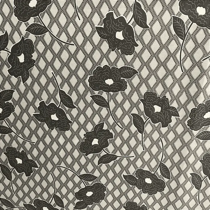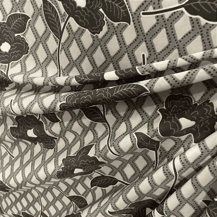 Liganete Estampada - Rosas Quadriculado Cinza - 1,60m de Largura -