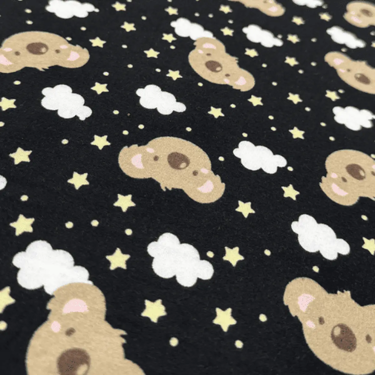 Malha Suede Pijama - Coala Fundo Preto - 1,60m de Largura -