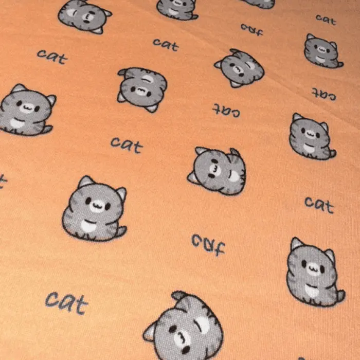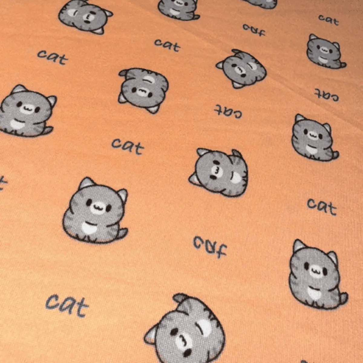 Malha Suede Pijama - Gato Fundo Laranja - 1,60m de Largura -