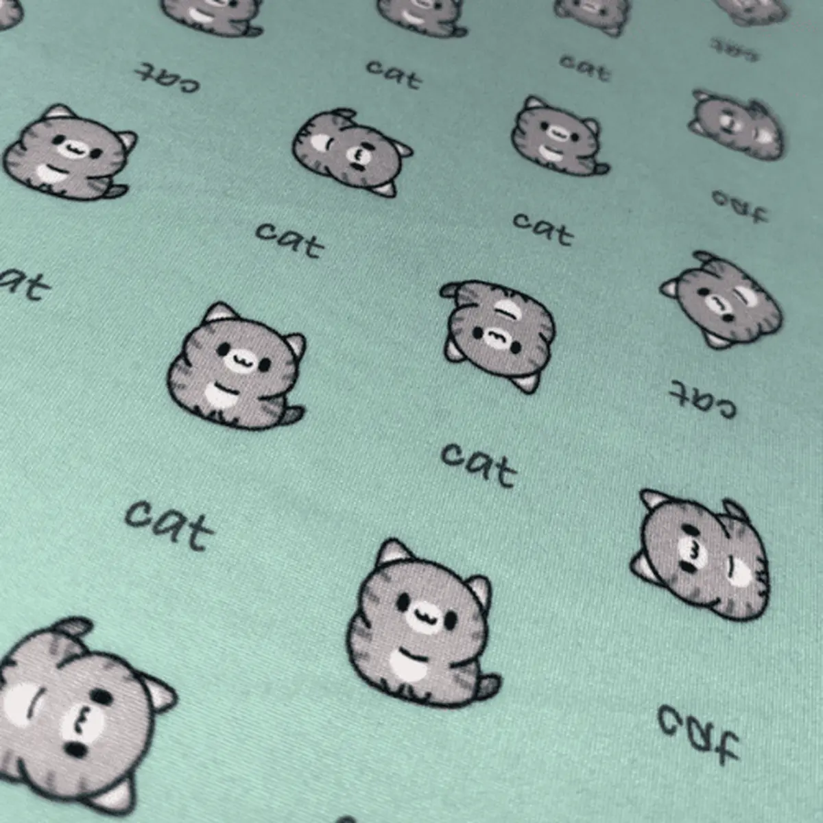 Malha Suede Pijama - Gato Fundo Verde - 1,60m de Largura -