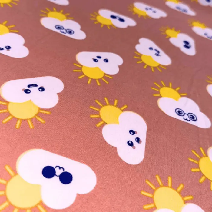 Malha Suede Pijama - Nuvem Fundo Rose - 1,60m de Largura -