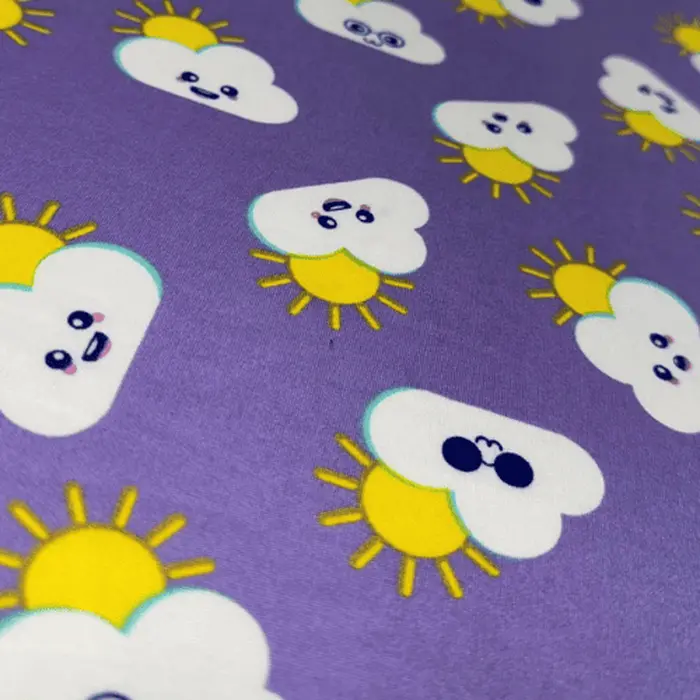 Malha Suede Pijama - Nuvem Fundo Roxo - 1,60m de Largura -