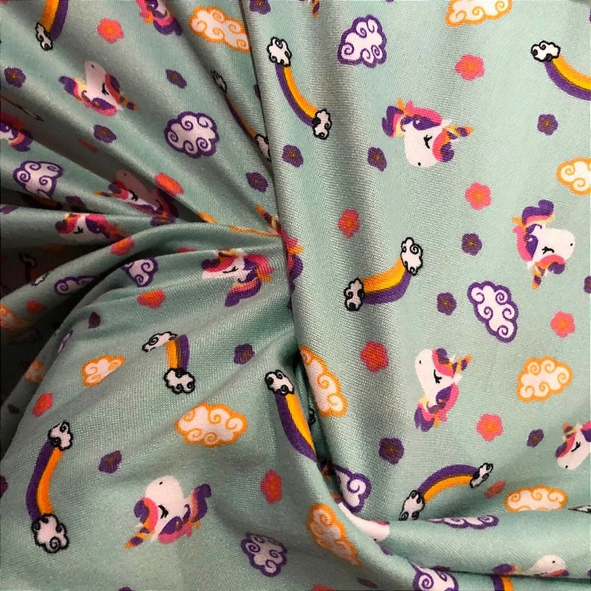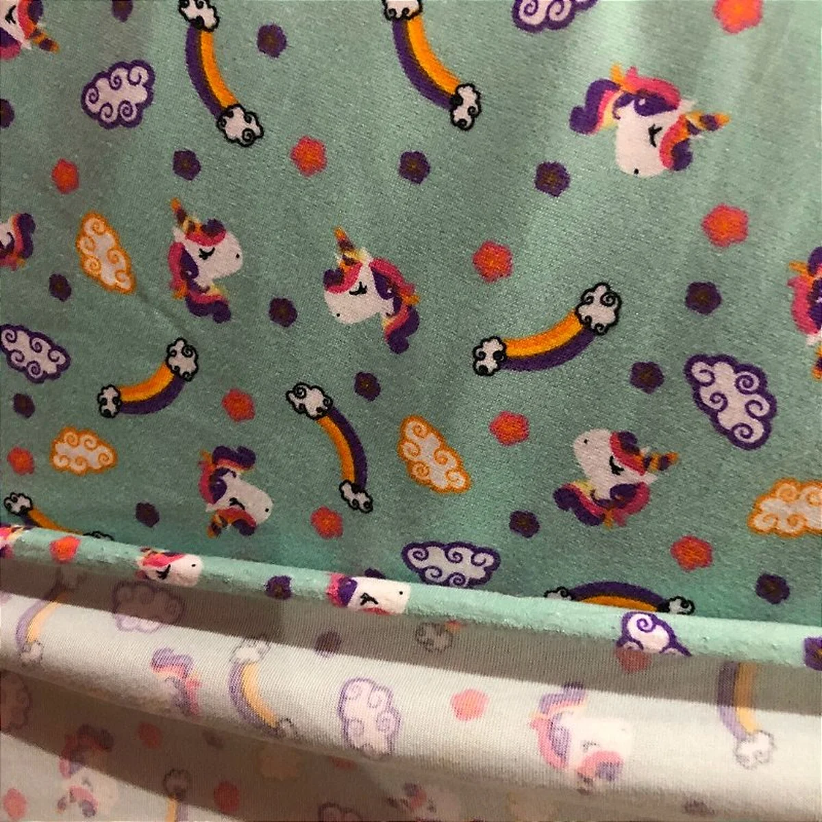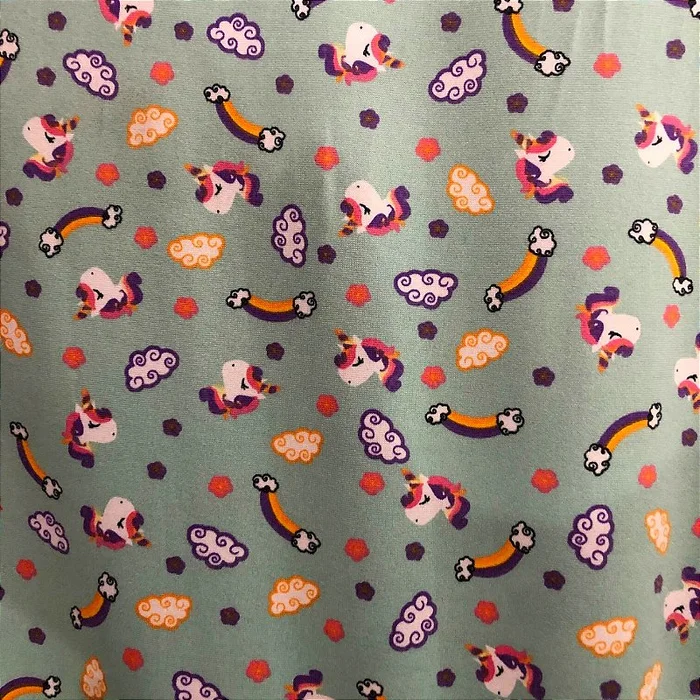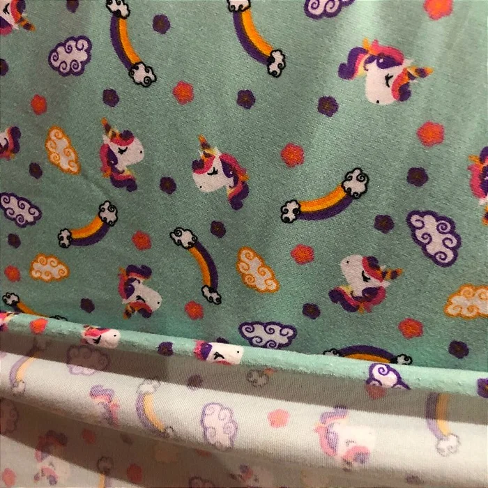 Malha Suede Pijama - Unicórnio Fundo Verde - 1,60m de Largura -