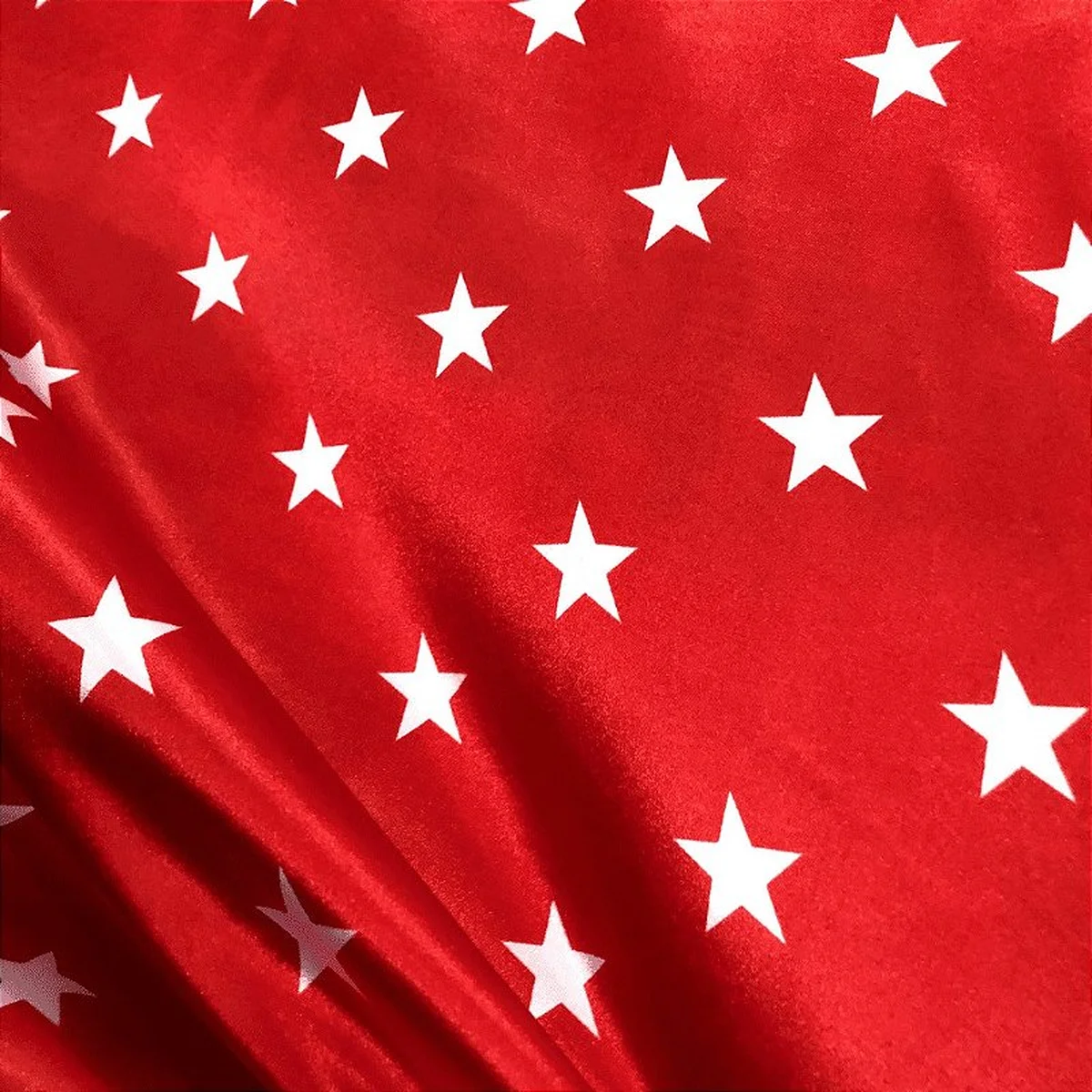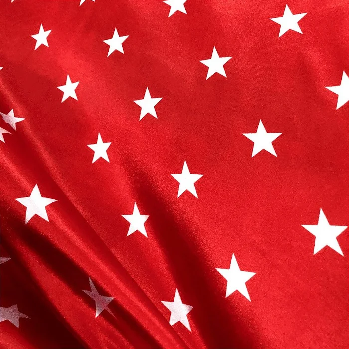 Cetim Estampado - Estrelas Fundo Vermelho -