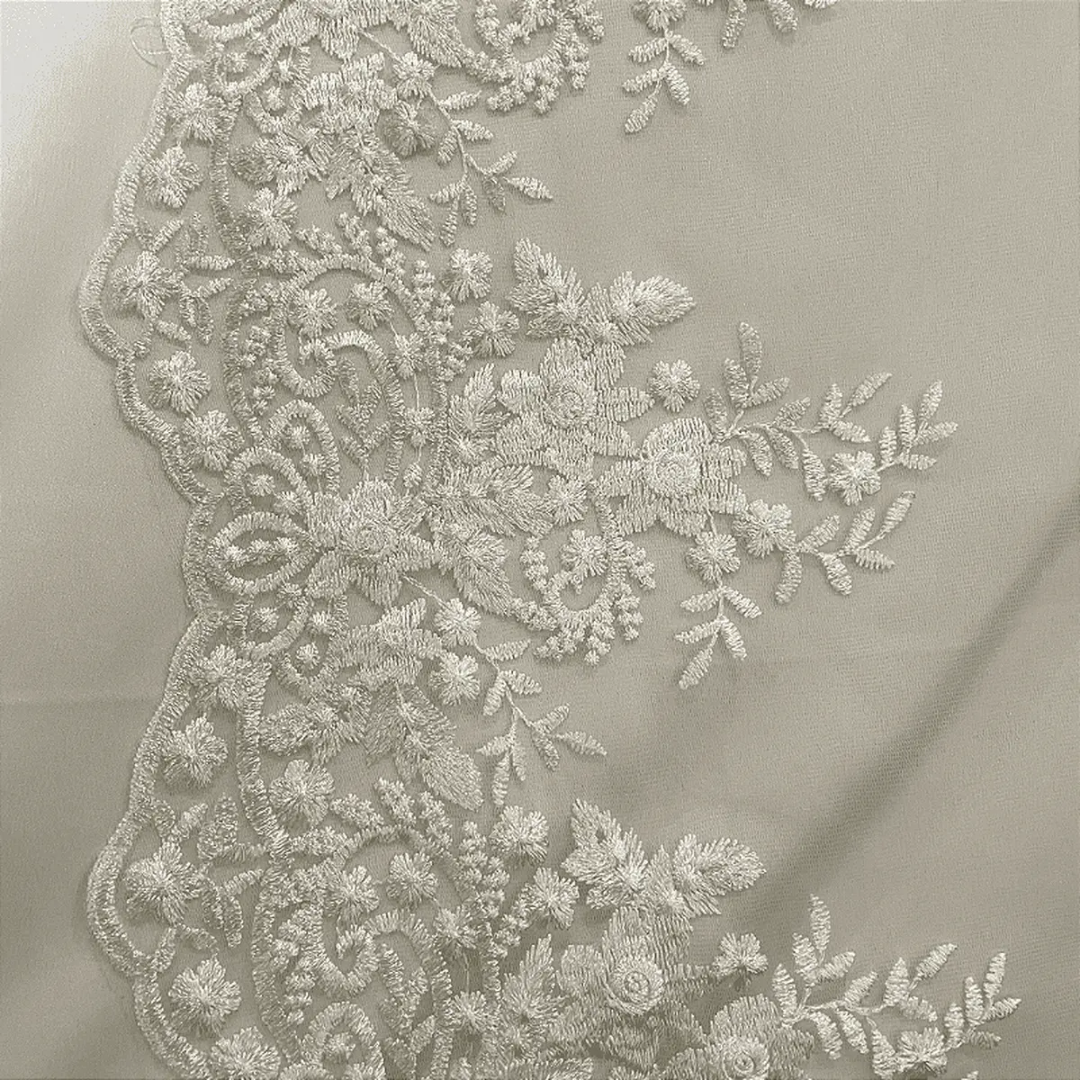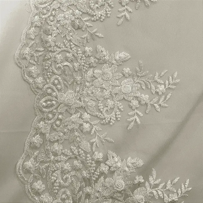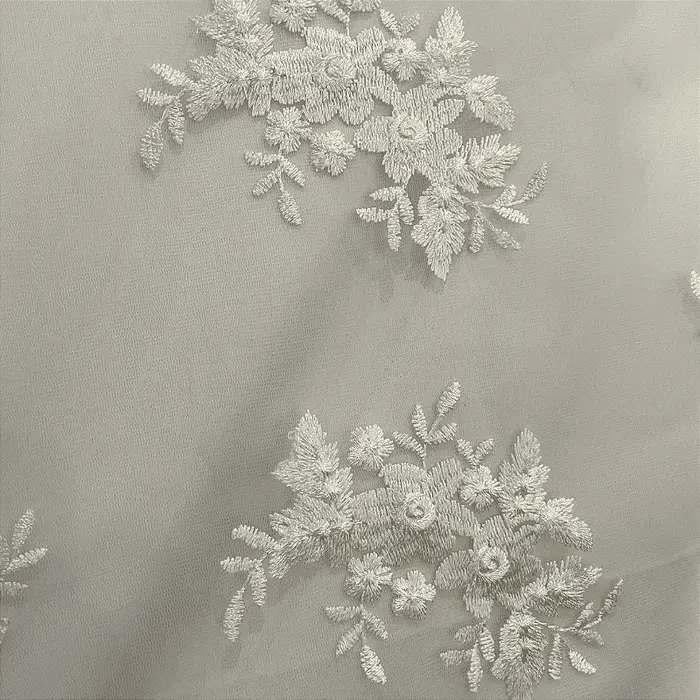 Renda Tule Bordado - Floral Off White - 1,40m de Largura -