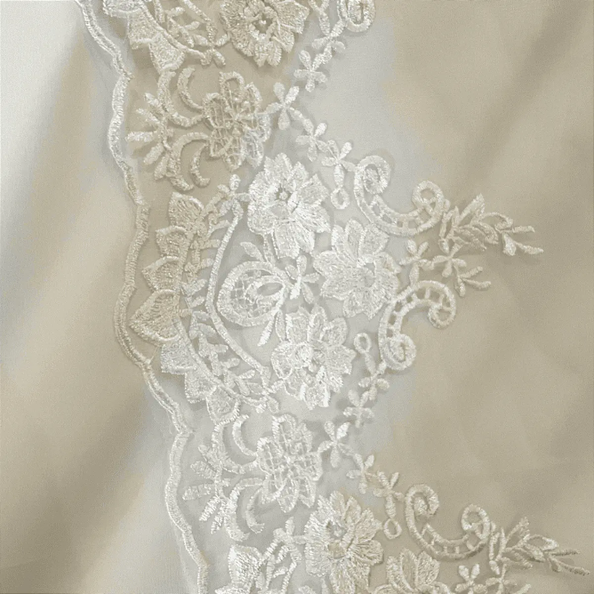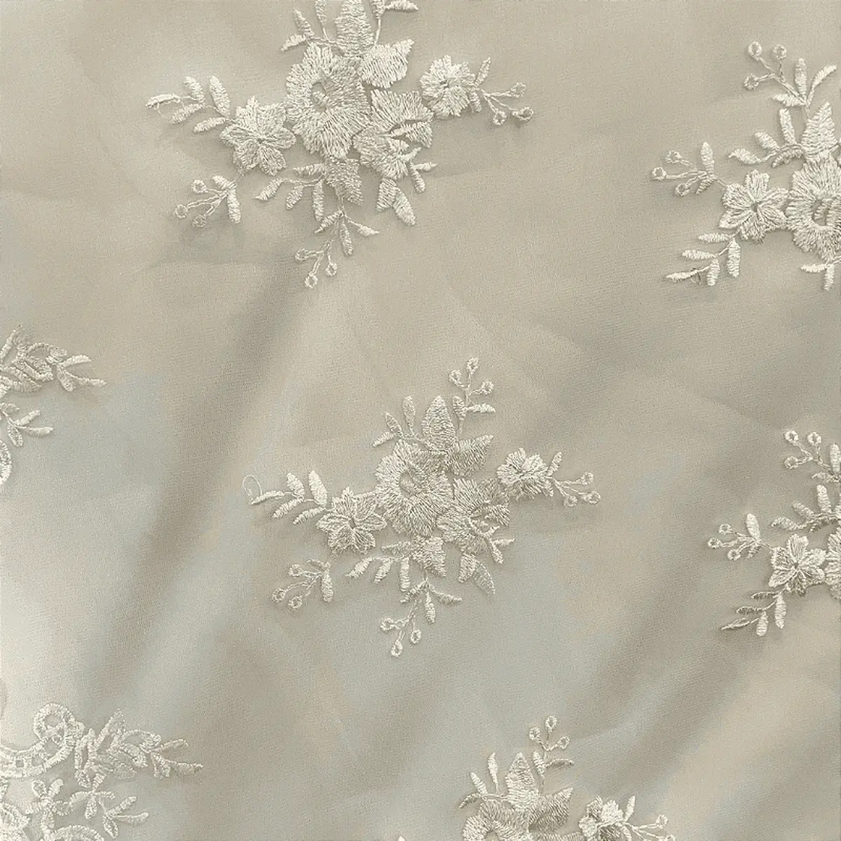 Renda Tule Bordado - Floral 2 Off White - 1,40m de Largura -
