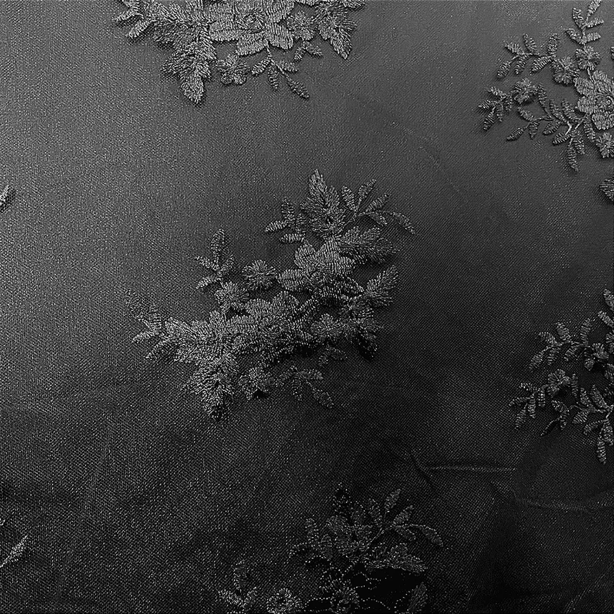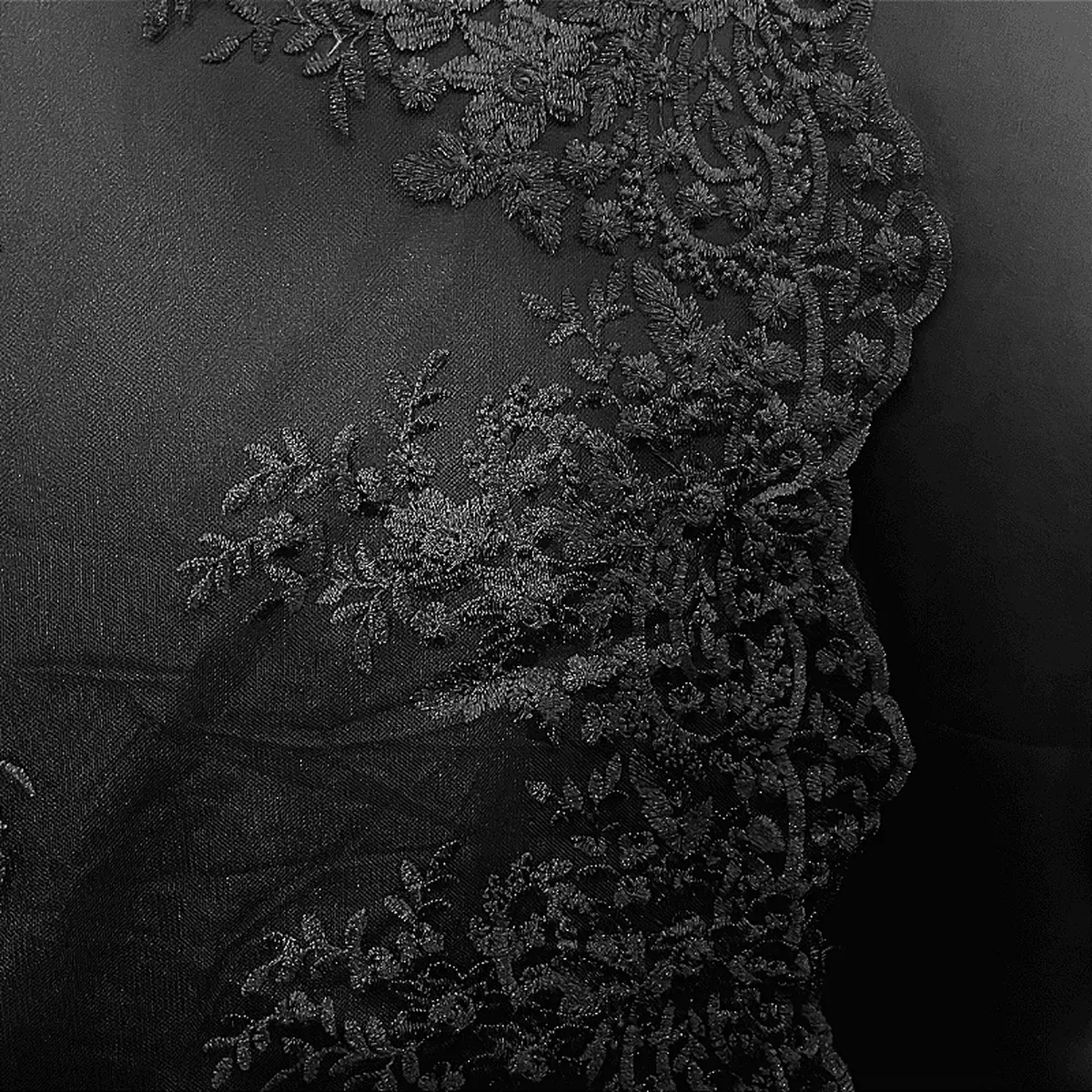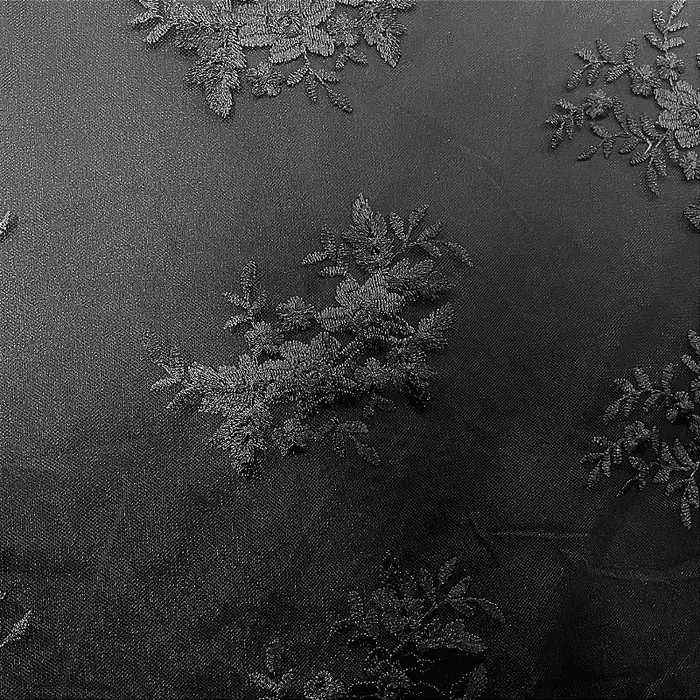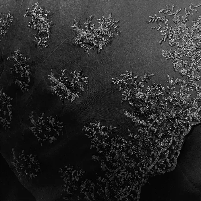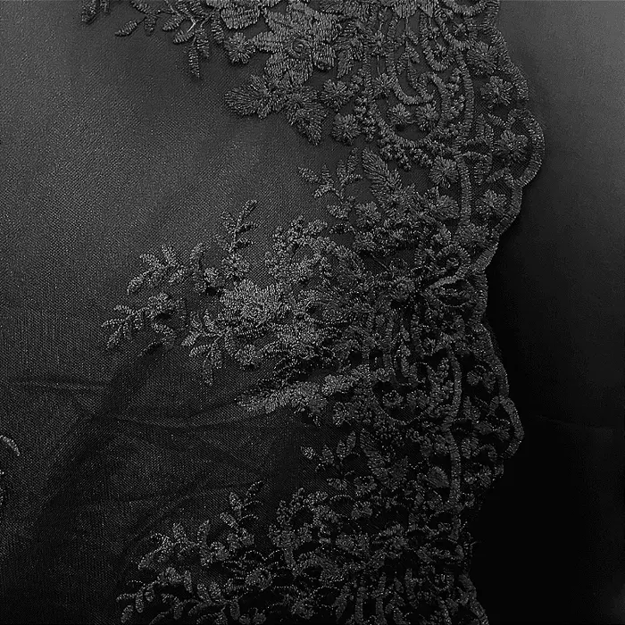 Renda Tule Bordado - Floral Preto - 1,40m de Largura -