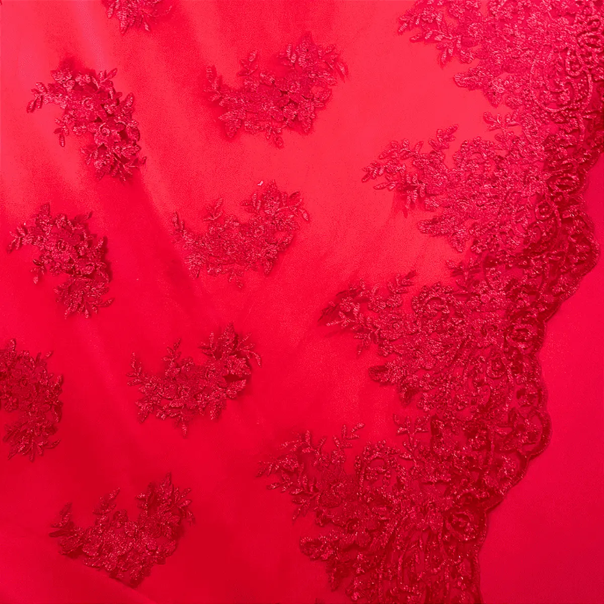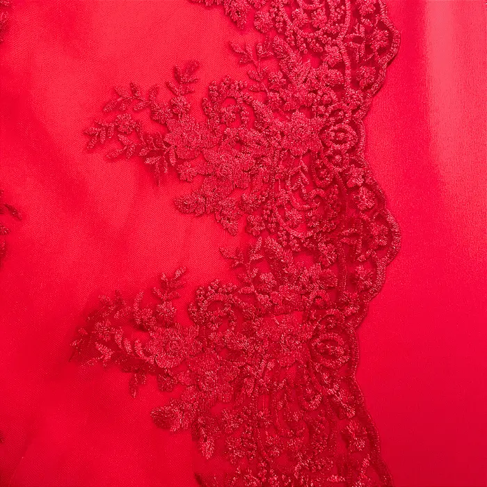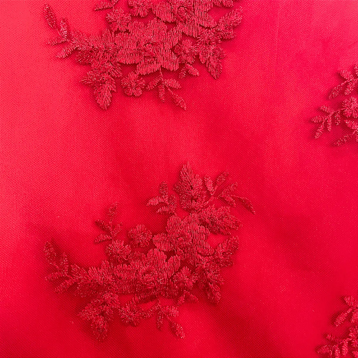 Renda Tule Bordado - Floral Vermelho - 1,40m de Largura -