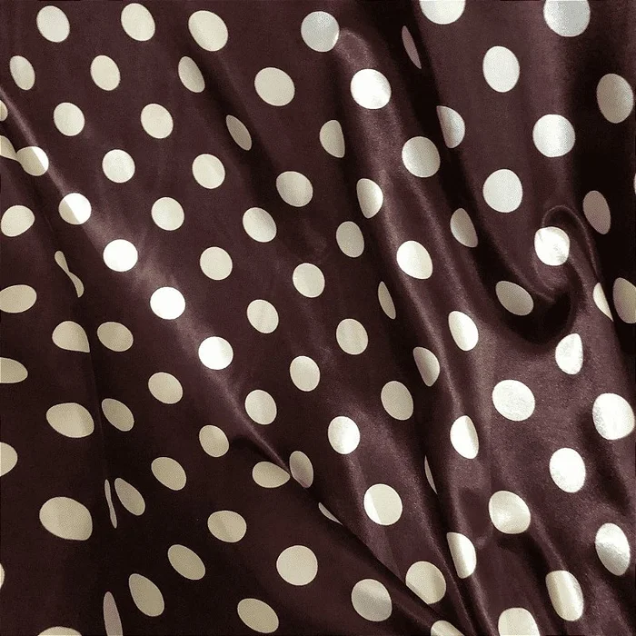 Cetim Estampado - Poá Médio Bolinha Bege Fundo Marrom -
