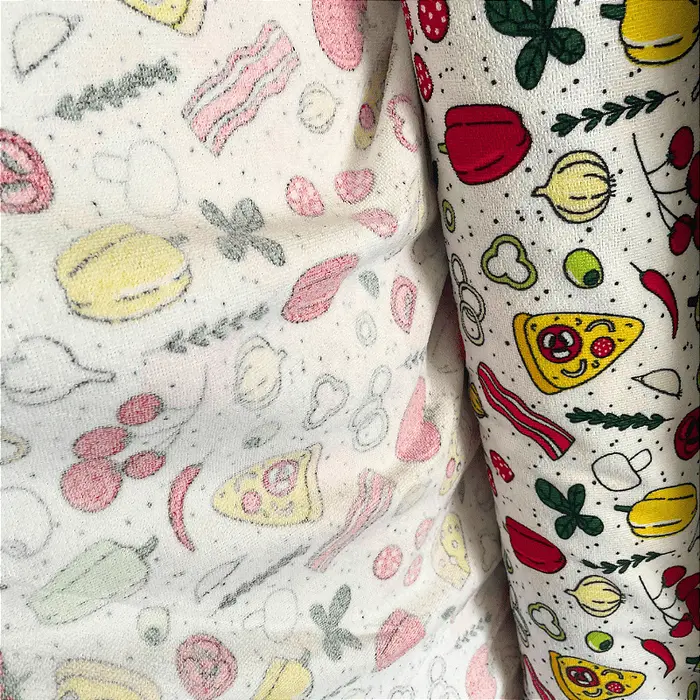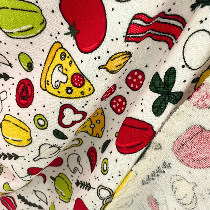 Tecido Atoalhado de Microfibra Estampado - Pizza - 1,47m de Largura | Alta Absorção e Secagem Rápida