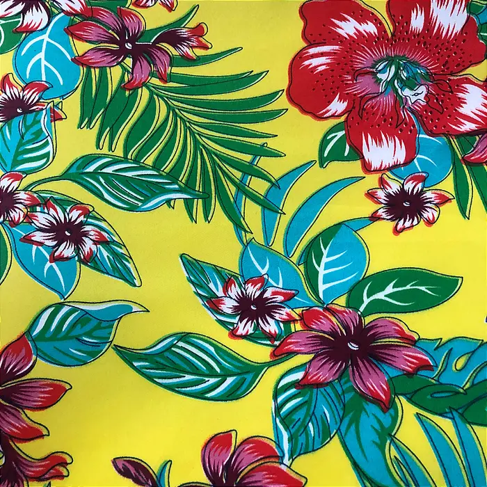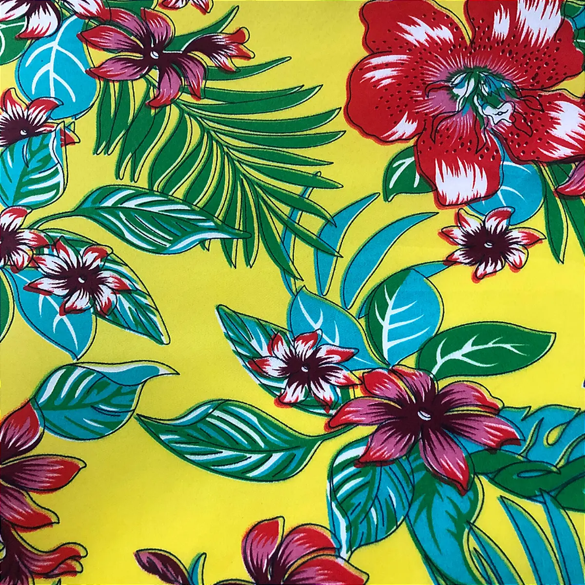 Tecido Chita Poliéster - Flor Fundo Amarelo - 1,50m de Largura -