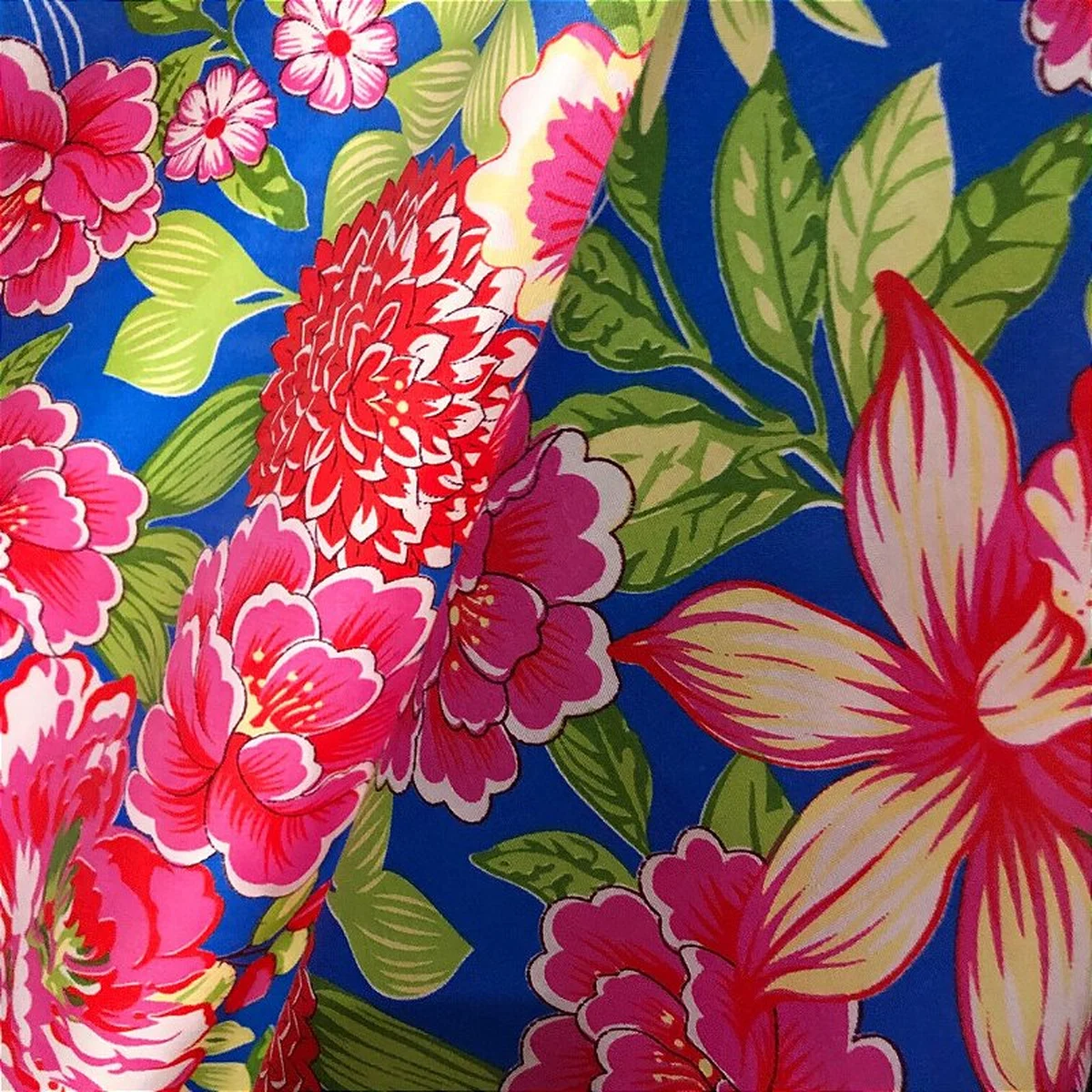 Tecido Chita Poliéster - Ramagem Floral Rosa Fundo Azul - 1,50m -