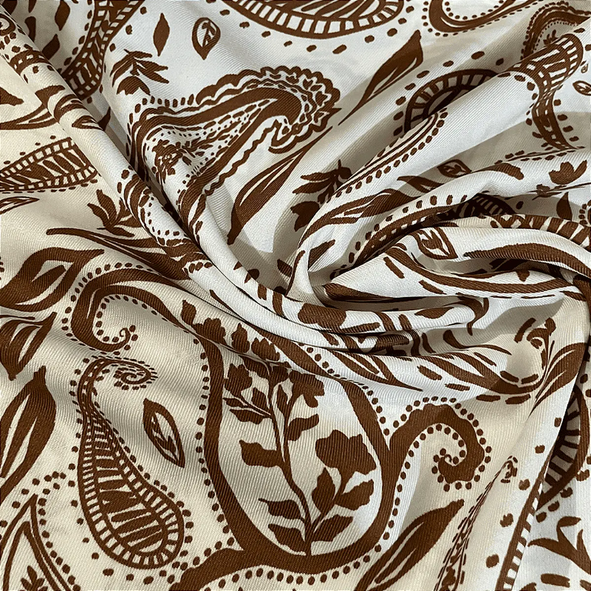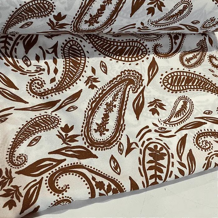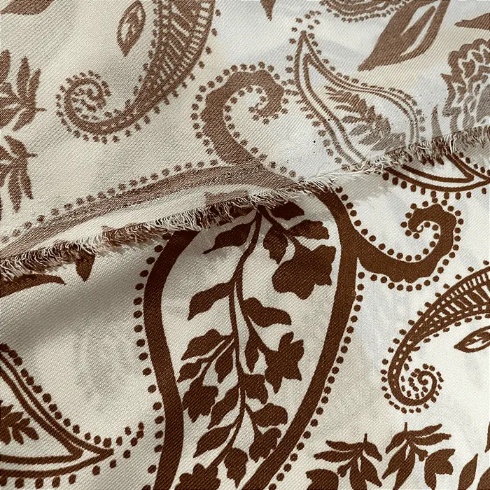 Tecido Crepe Sarjado Estampado - Cashmere Marrom - 1,50m de Larg -
