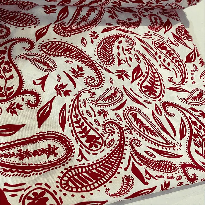Tecido Crepe Sarjado Estampado - Cashmere Vermelho - 1,50m de La -