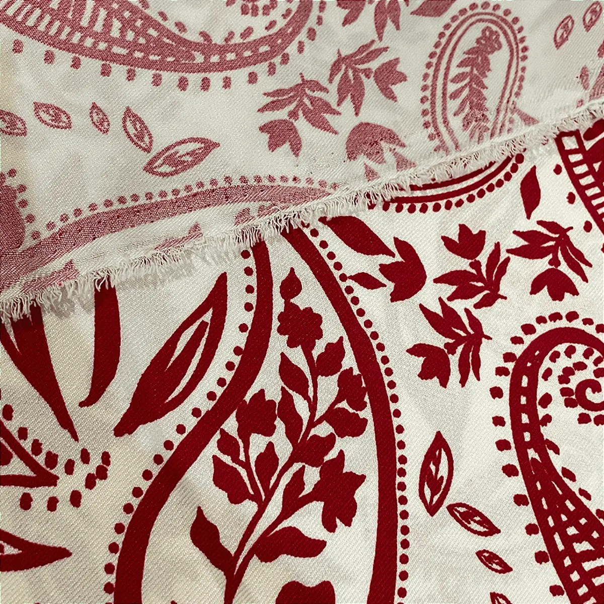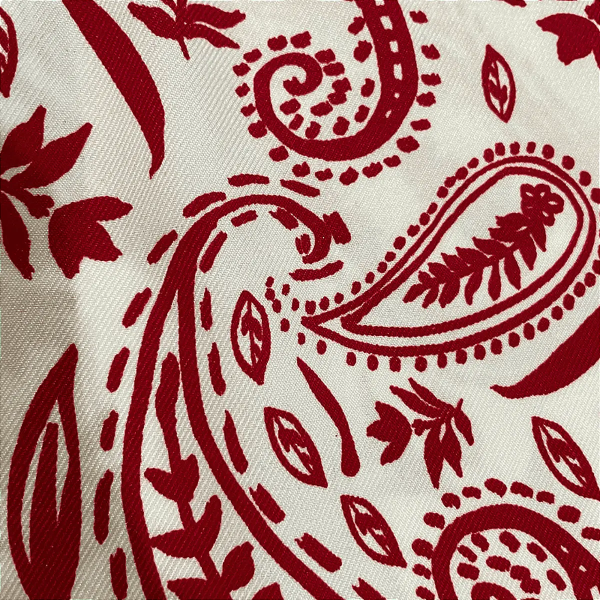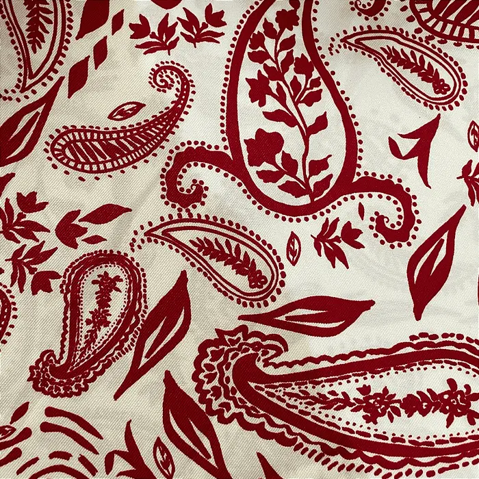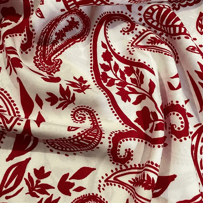 Tecido Crepe Sarjado Estampado - Cashmere Vermelho - 1,50m de Largura | Textura Diagonal e Não Amassa