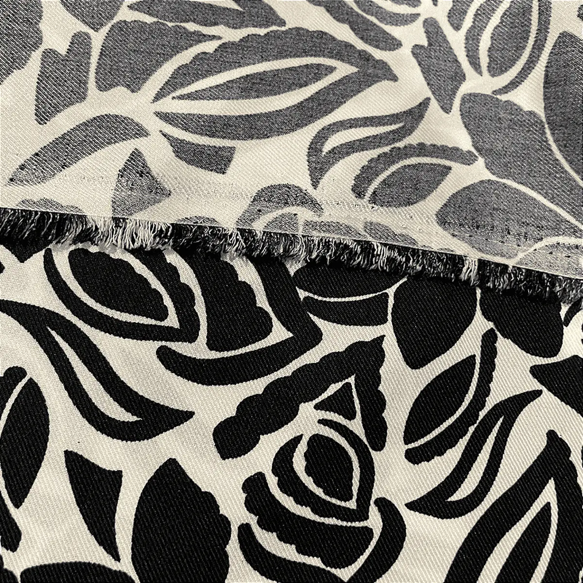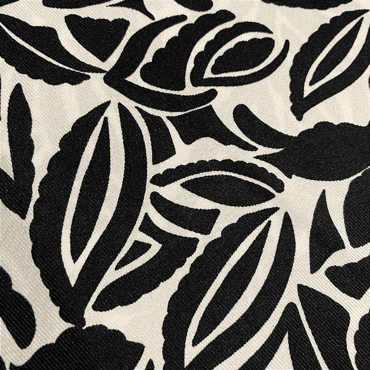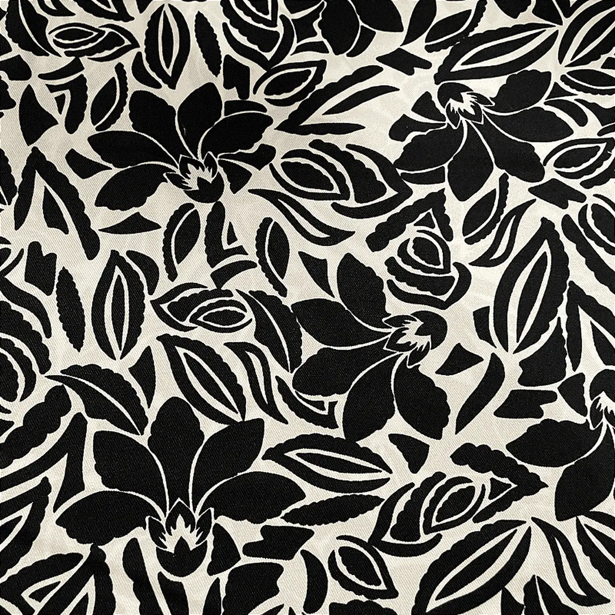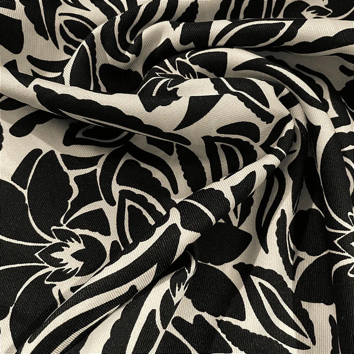 Tecido Crepe Sarjado Estampado - Floral Abstrato Preto e Branco - 1,50m de Largura | Textura Diagonal e Não Amassa