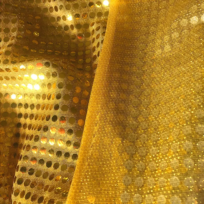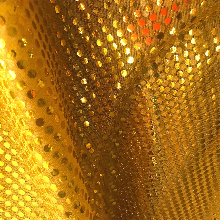 O tecido muito utilizado no carnaval ou para fazer fantasias o ano todo o Paetê é leve e fino, possui poás ( bolinhas ) metalizadas em sua superfície dando charme e brilho ao tecido.