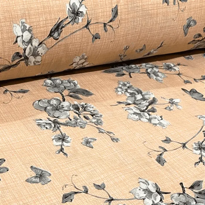 Tecido Percal Estampado 300 Fios 100% Poliéster - Ramagem Floral -