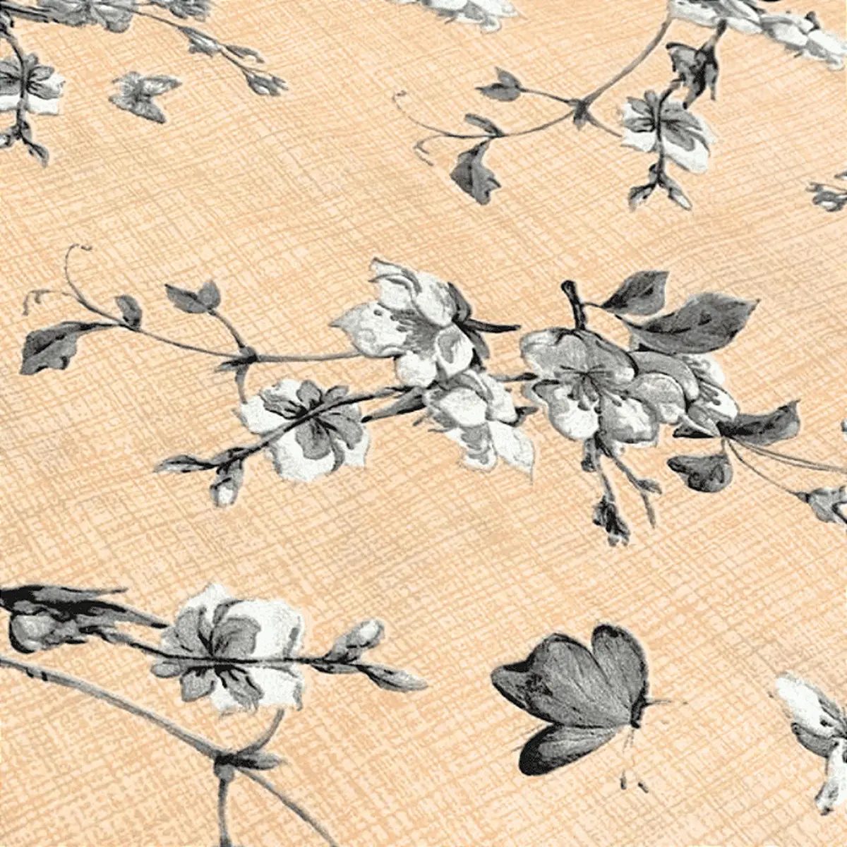 Tecido Percal Estampado 300 Fios 100% Poliéster - Ramagem Floral Cinza Fundo Laranja - 2,50m de Largura | Toque Macio e